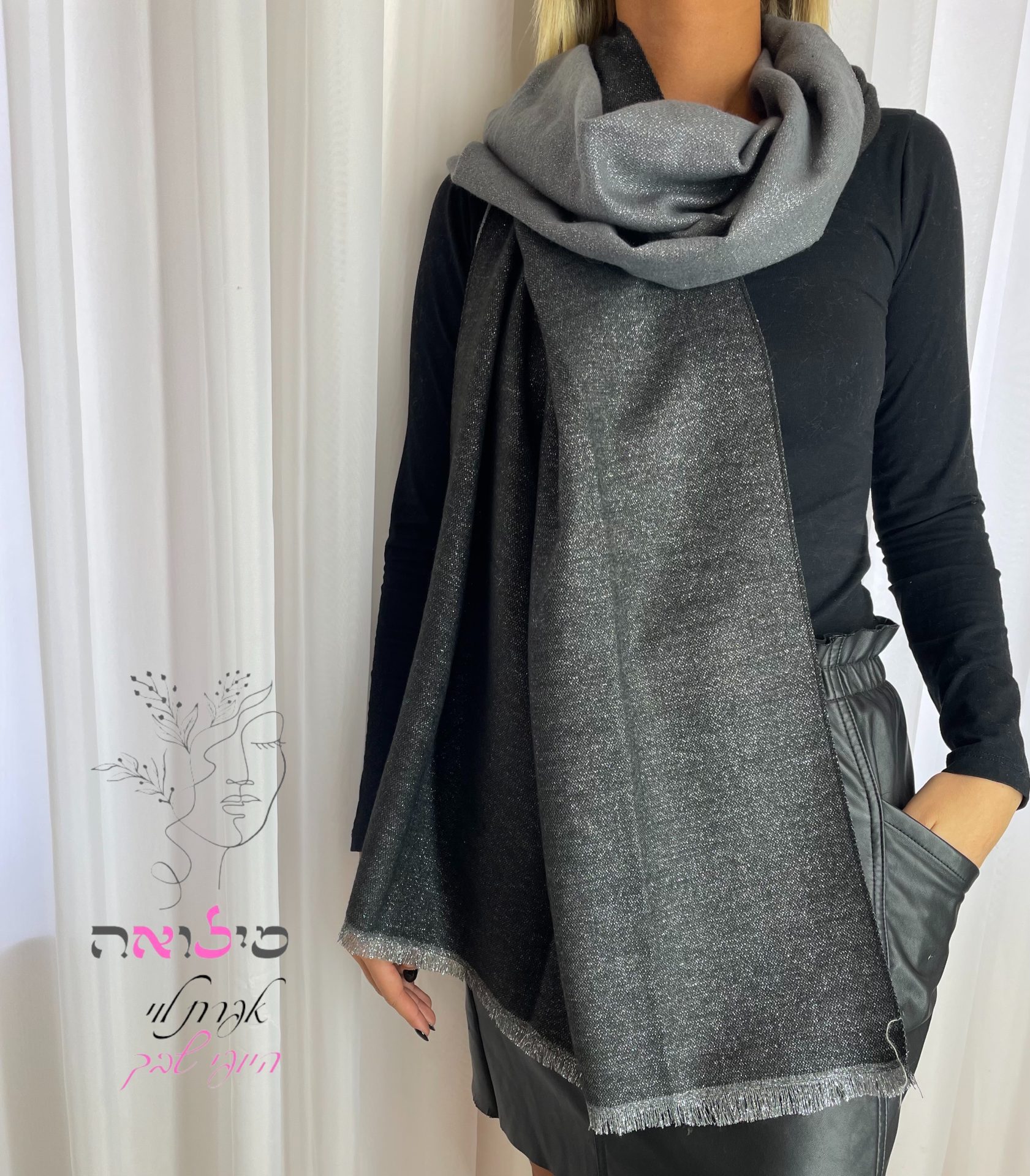 צעיף דו צדדי מנצנץ אפור / כסף
